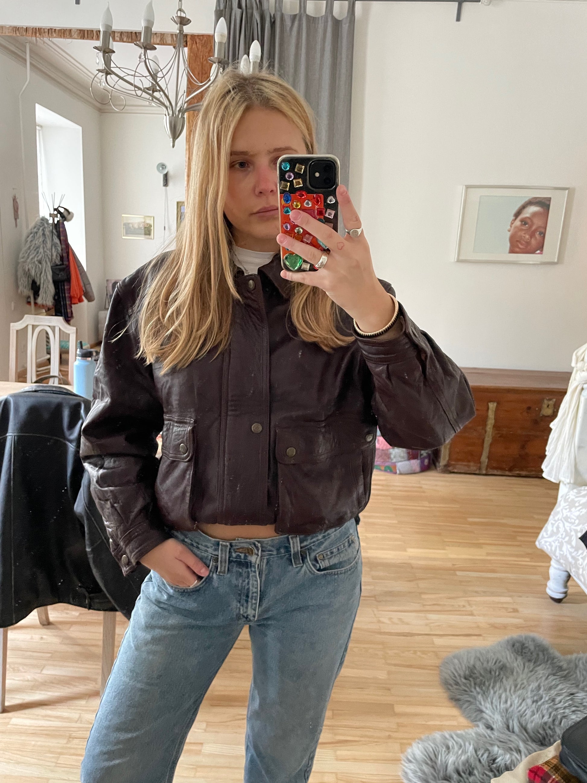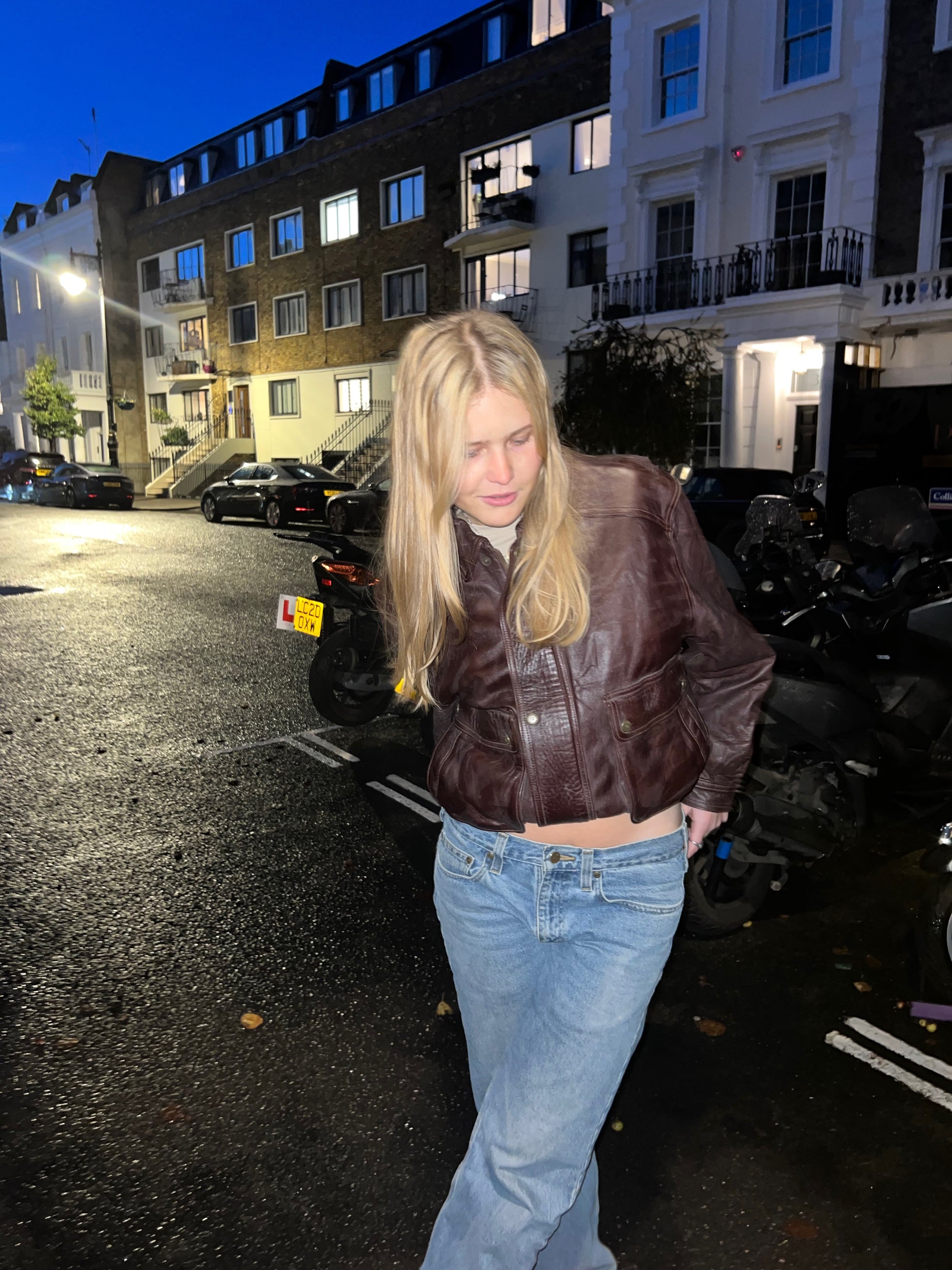 With its large pocket detail and cinched waist, this burgundy leather bomber is a MUST-HAVE!